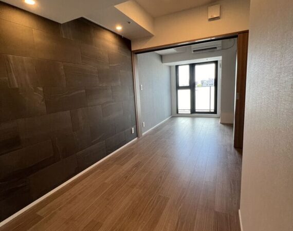 縦にすっと伸びる動線が印象的な1LDK。約9.4帖のリビングダイニングキッチンと4.3帖の洋室は、引き戸で仕切ることで空間の一体感と独立性を自在に切り替えられます。洋室にはウォークインクローゼット、玄関や洗面室には複数のストレージを備え、コンパクトな中にしっかりとした収納力を確保。コンパクトながらもそれぞれが独立した水回りなど細やかな生活配慮も魅力です。限られた面積を無駄なく活かした、都会的でスマートな住まいです。