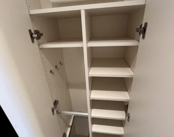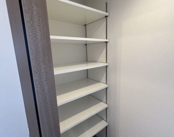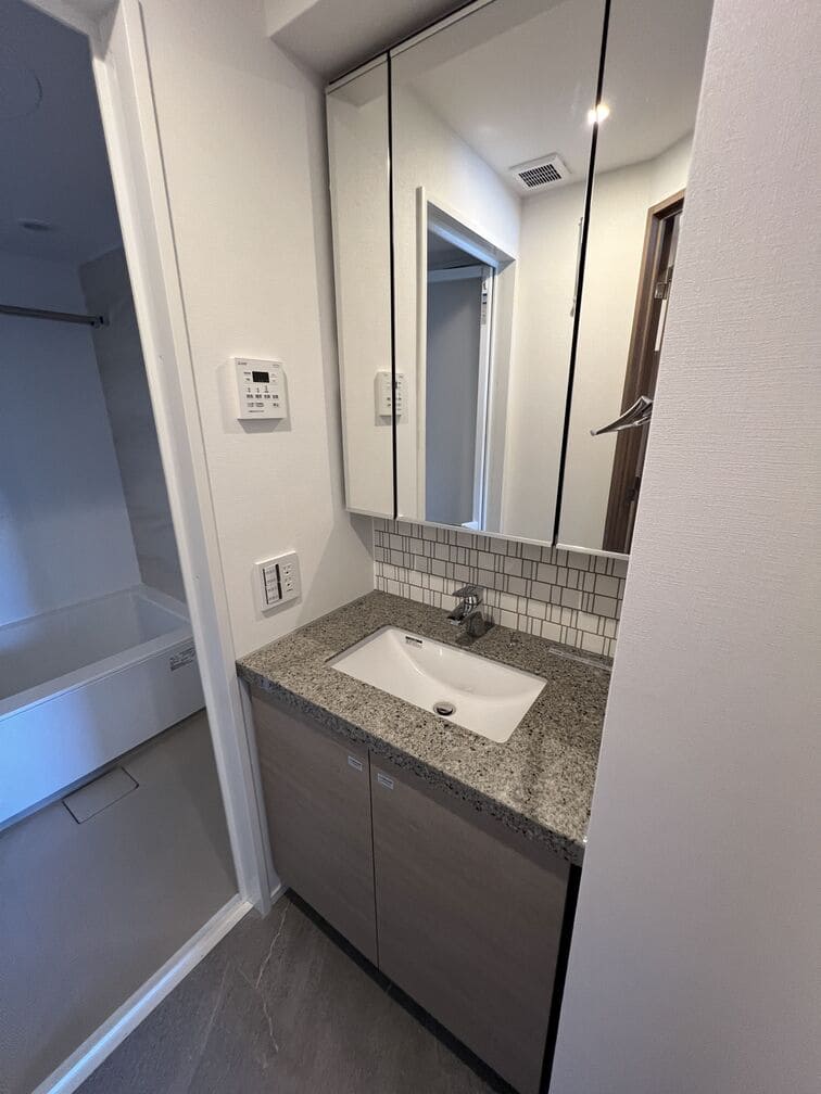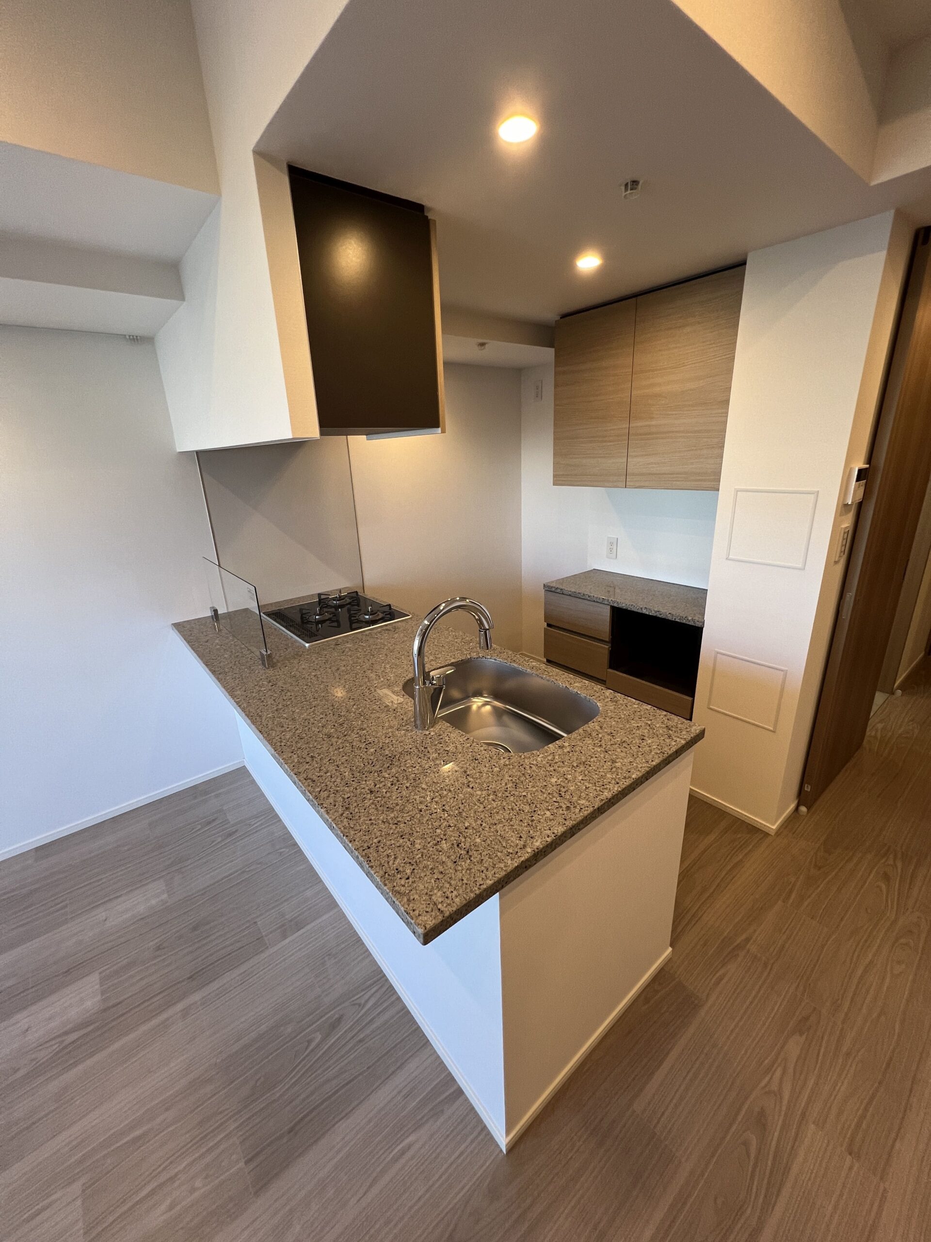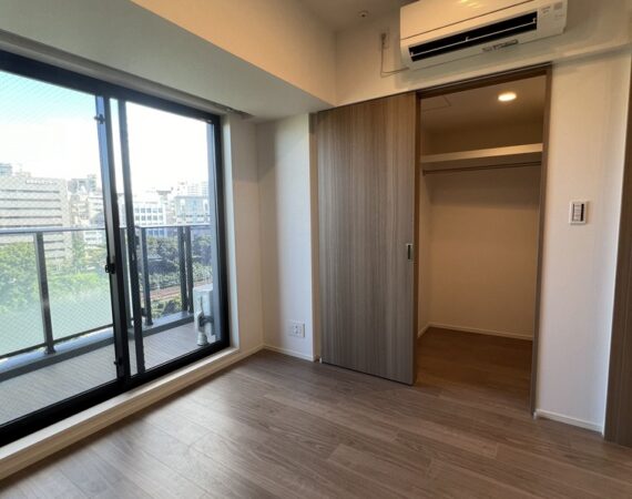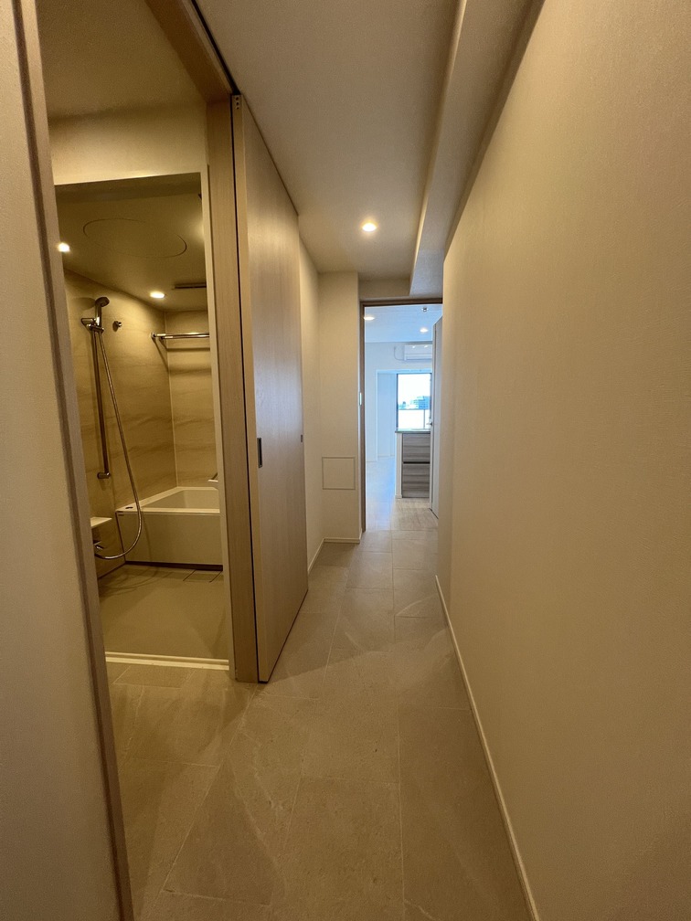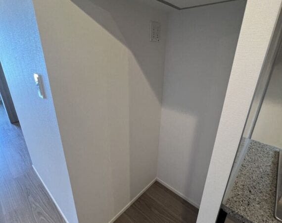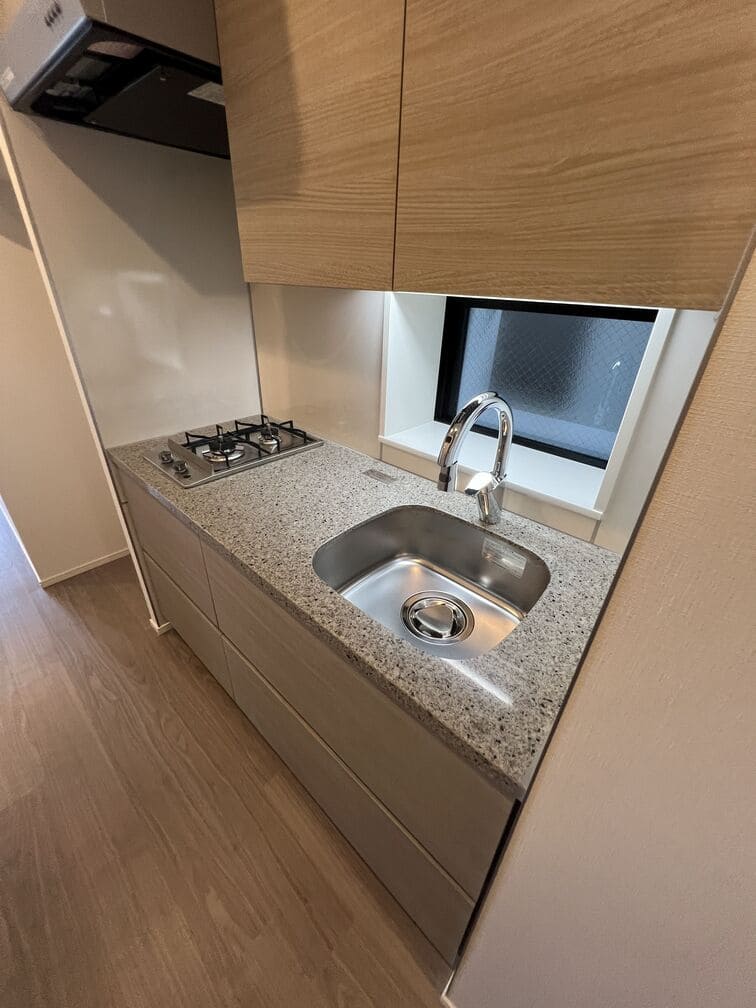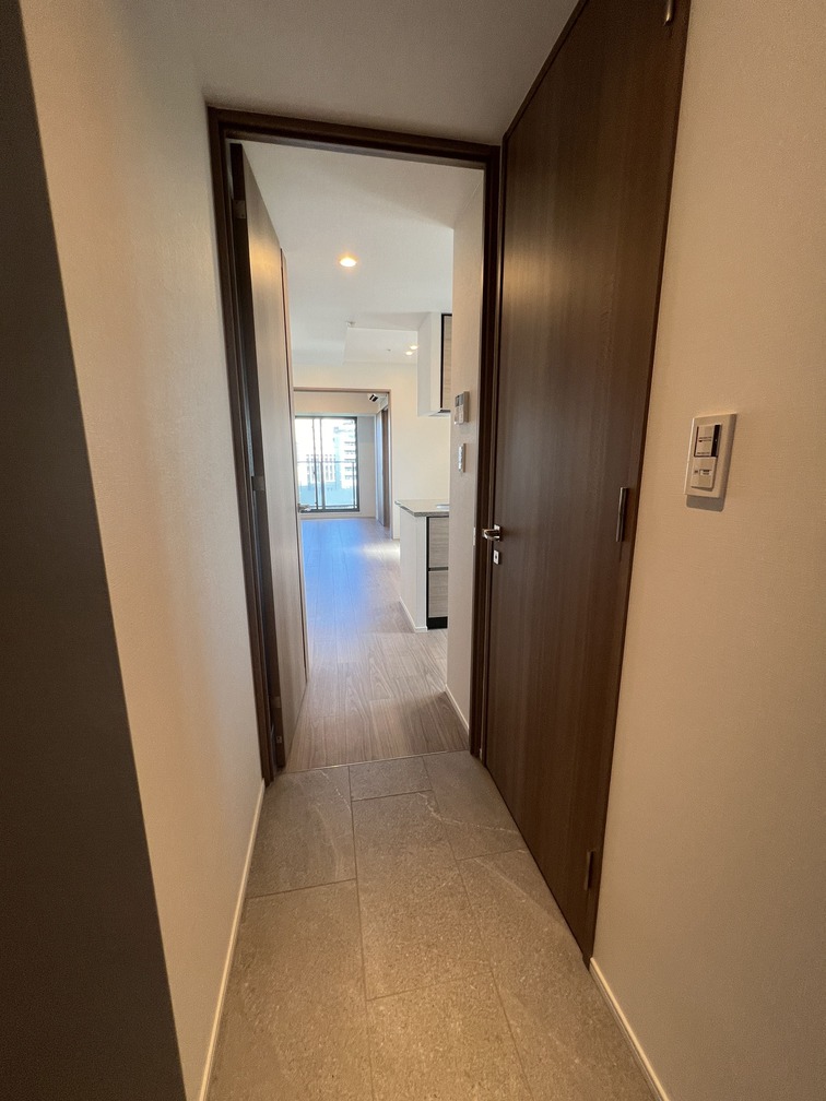 縦にすっと伸びる動線が印象的な1LDK。約9.4帖のリビングダイニングキッチンと4.3帖の洋室は、引き戸で仕切ることで空間の一体感と独立性を自在に切り替えられます。洋室にはウォークインクローゼット、玄関や洗面室には複数のストレージを備え、コンパクトな中にしっかりとした収納力を確保。コンパクトながらもそれぞれが独立した水回りなど細やかな生活配慮も魅力です。限られた面積を無駄なく活かした、都会的でスマートな住まいです。